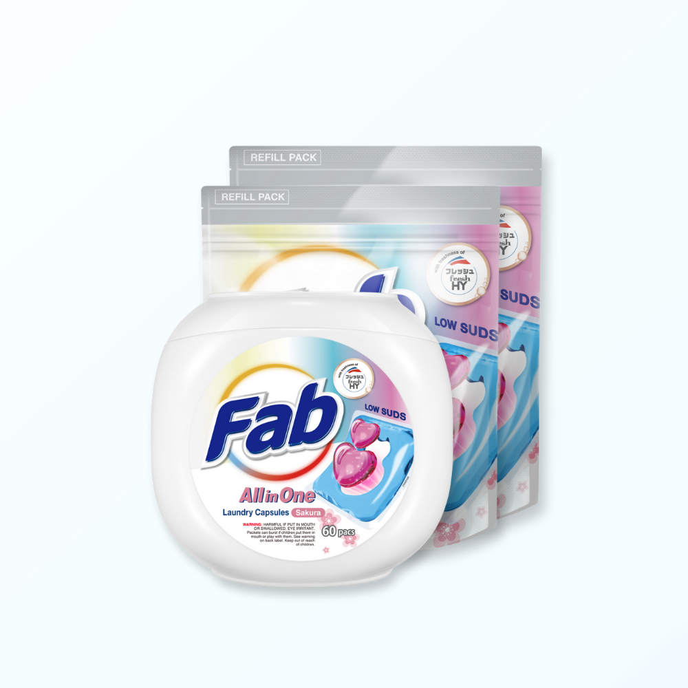Fab 4in1 All-in-One Laundry Capsules 60pcs + 2X Refill 24 Pods