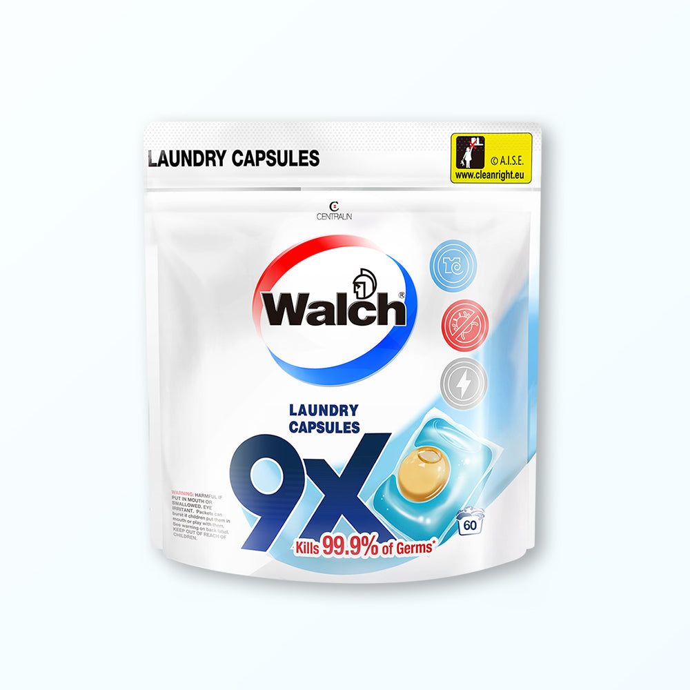 German formulated, Walch Laundry Capsules contains Walch disinfectant and concentrated detergent that fights 99.9% of germs which provides double protection for you and your family. It combines 9x cleaning power, 99.9% anti-dust mite in a single capsule. Wash up to 6kg of laundry with just a toss of capsule into the washing machine drum.